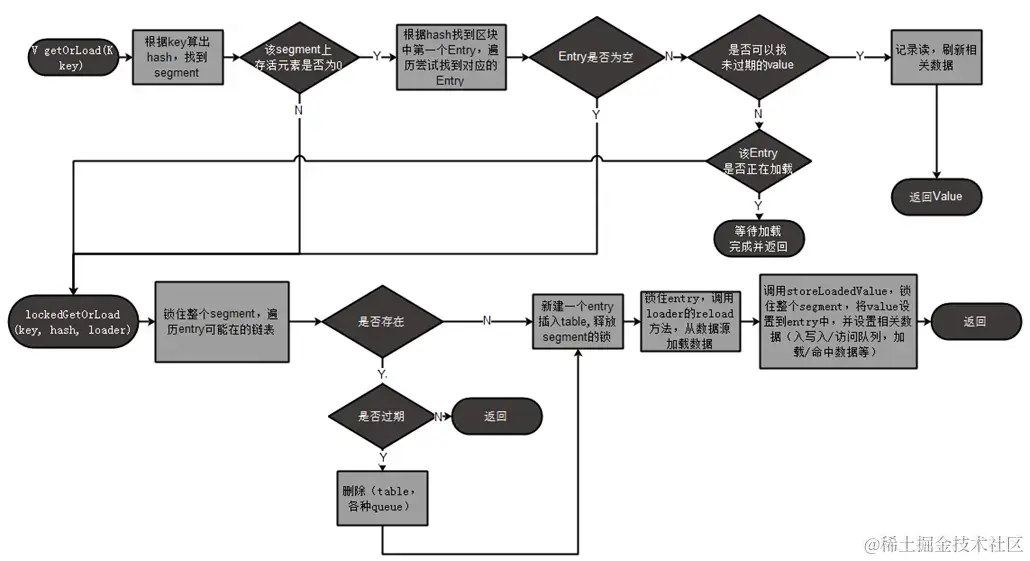 在设计何时加载的问题上,Guava Cache 提供了一个 Loader 接口,让用户可以自定义加载过程,在由 Cache 在找不到对象的时候主动调用 Loader 去加载,还通过一个巧妙的方法,既保证了 Loader 的只运行一次,还能保证锁粒度极小,保证并发加载时,安全且高性能。