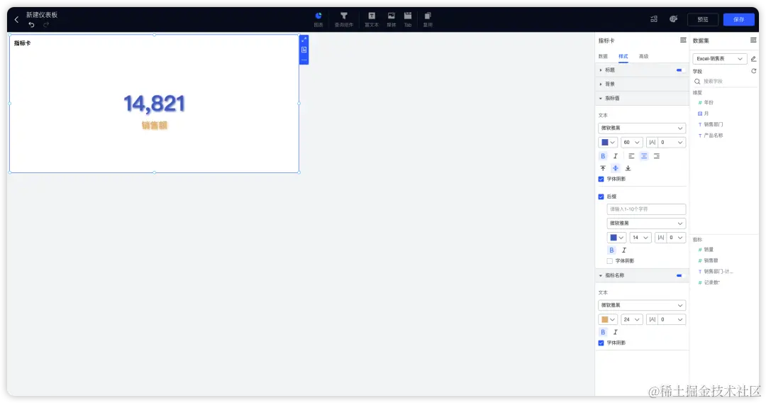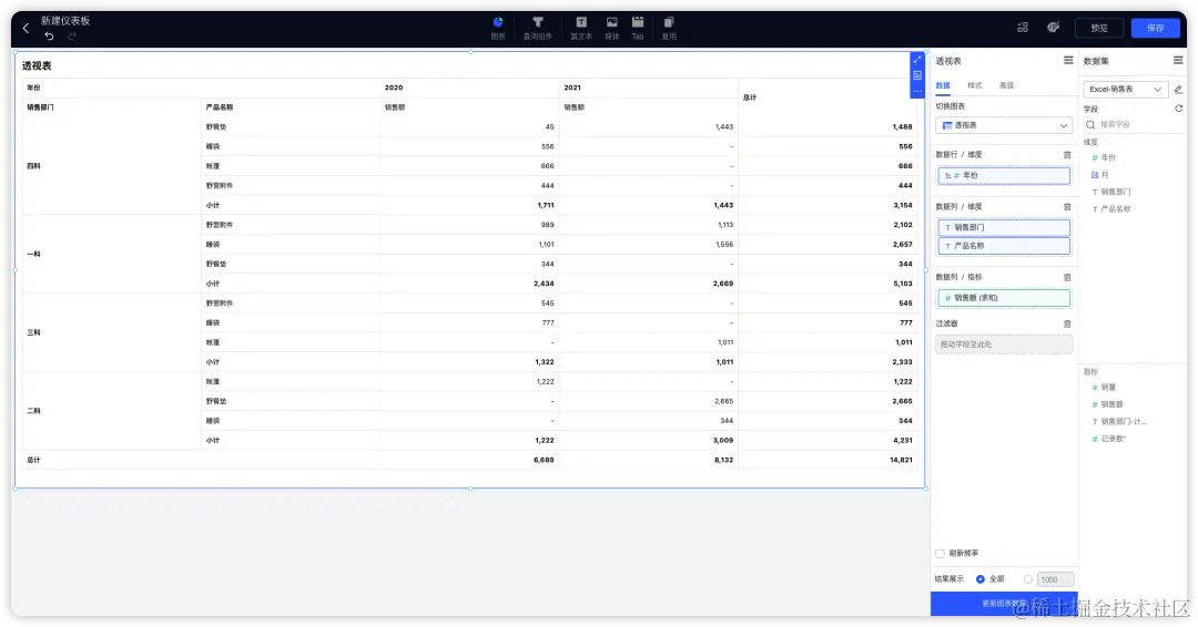 在DataEase v2.3.0版本中,新增支持透视表和指标卡两种图表类型。