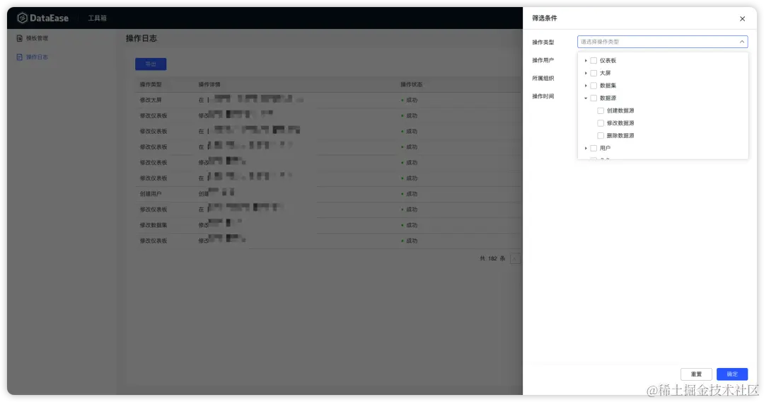 ■ 操作日志:支持用户查看在DataEase平台内的相关操作记录