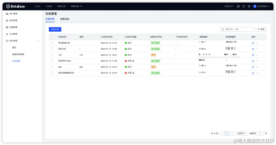 ▲ 图2 DataEase“同步管理”功能模块的任务管理页面