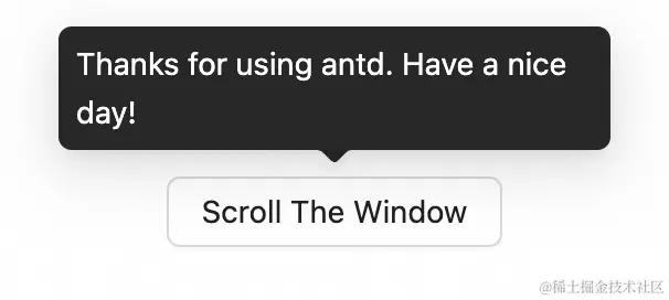 通过 useEffect,我们添加了对 scroll 事件的监听来在页面滚动时隐藏 Tooltip,防止 Tooltip 位置不正确。