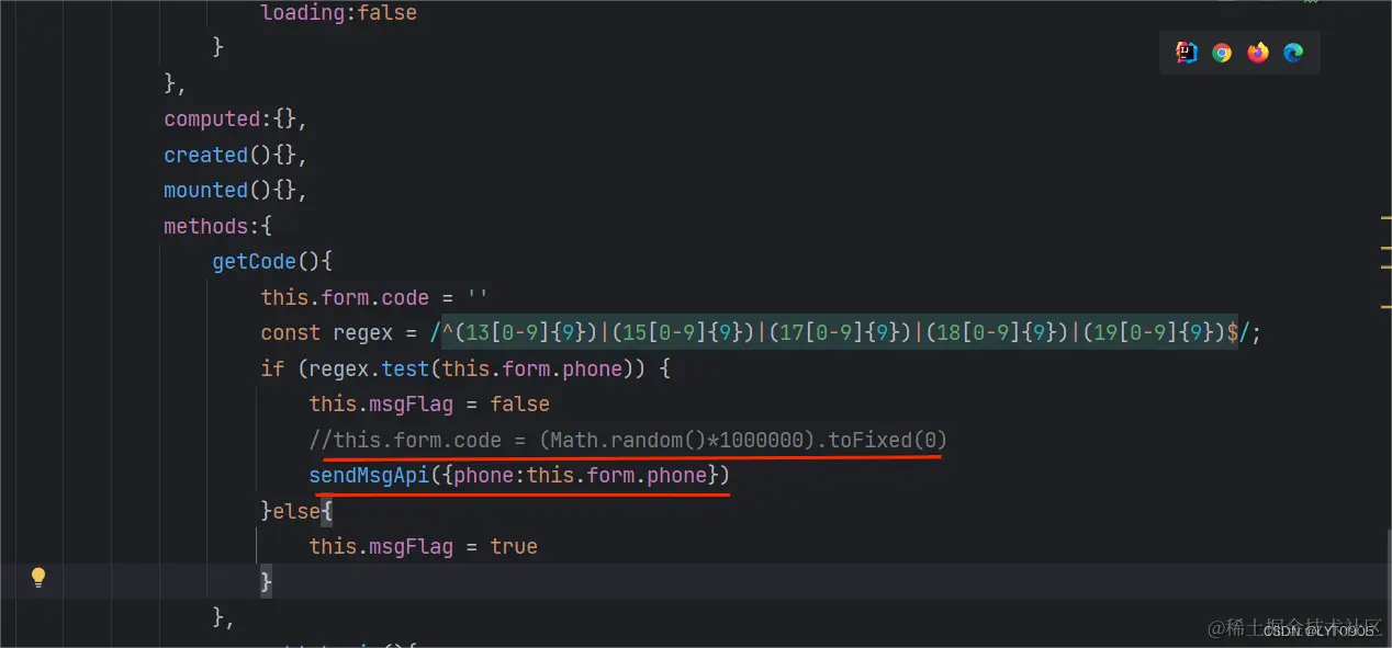 编辑注释掉原来的代码,就是因为有了这段代码,所以在获取验证码时会自动填充。