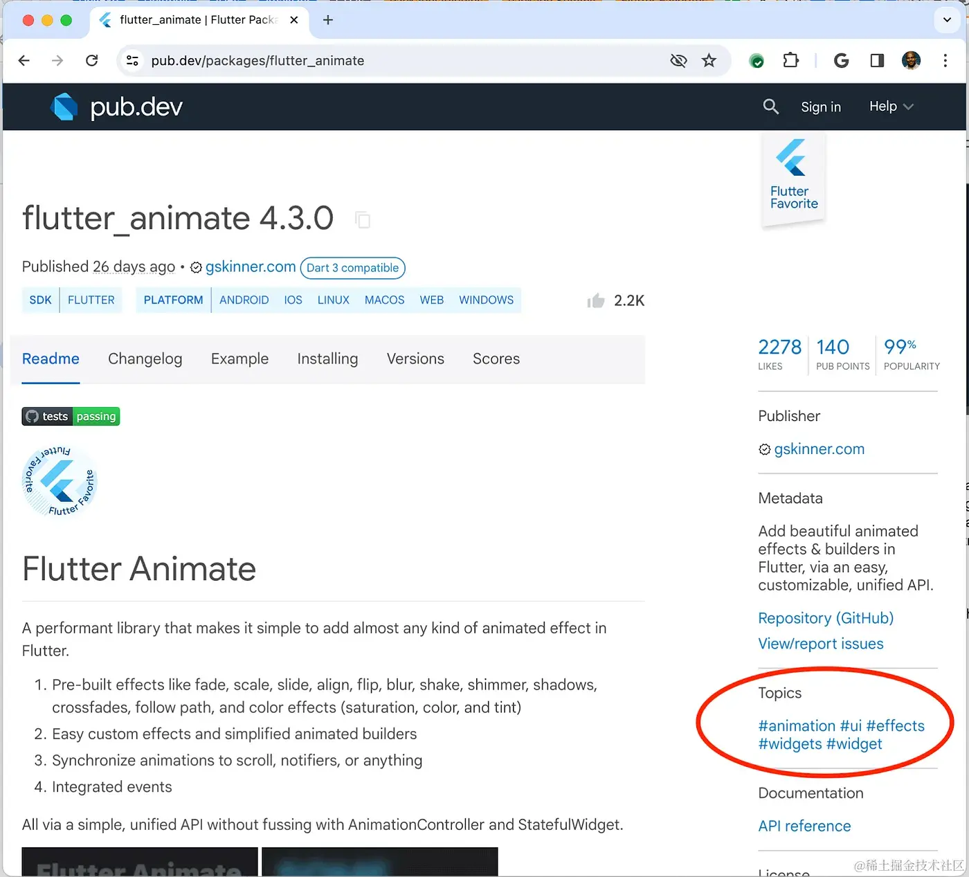 - flutter_animate:这个强大的动画库可以让你的 UI 更加生动,它简化了复杂的动画,并让所有 Flutter 开发者都能使用它。它的声明式语法和丰富的文档使创建流畅且富有表现力的动画变得轻而易举。