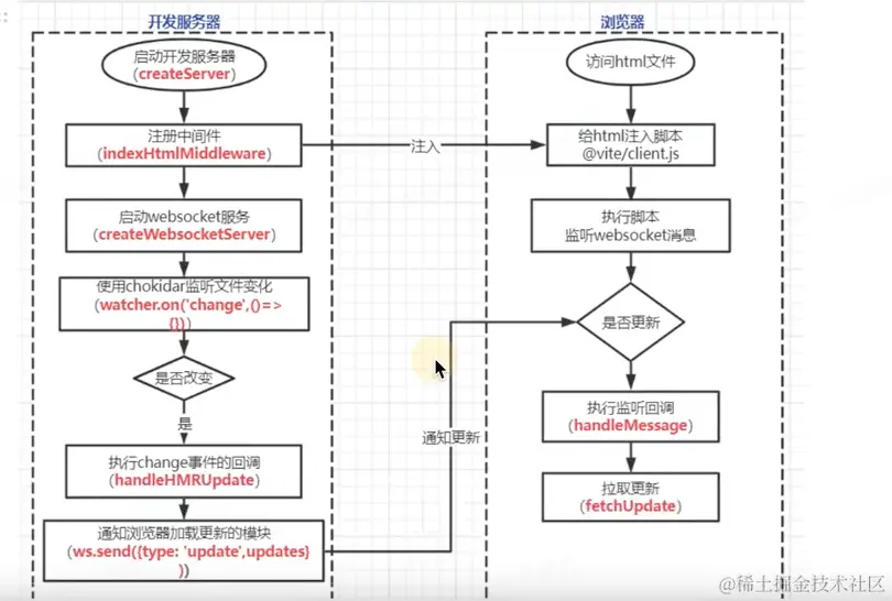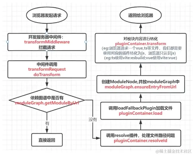 浏览器执行ESM的import时,会向dev server发起该模块的ajax请求,服务器对源码做简单处理后返回给浏览器。