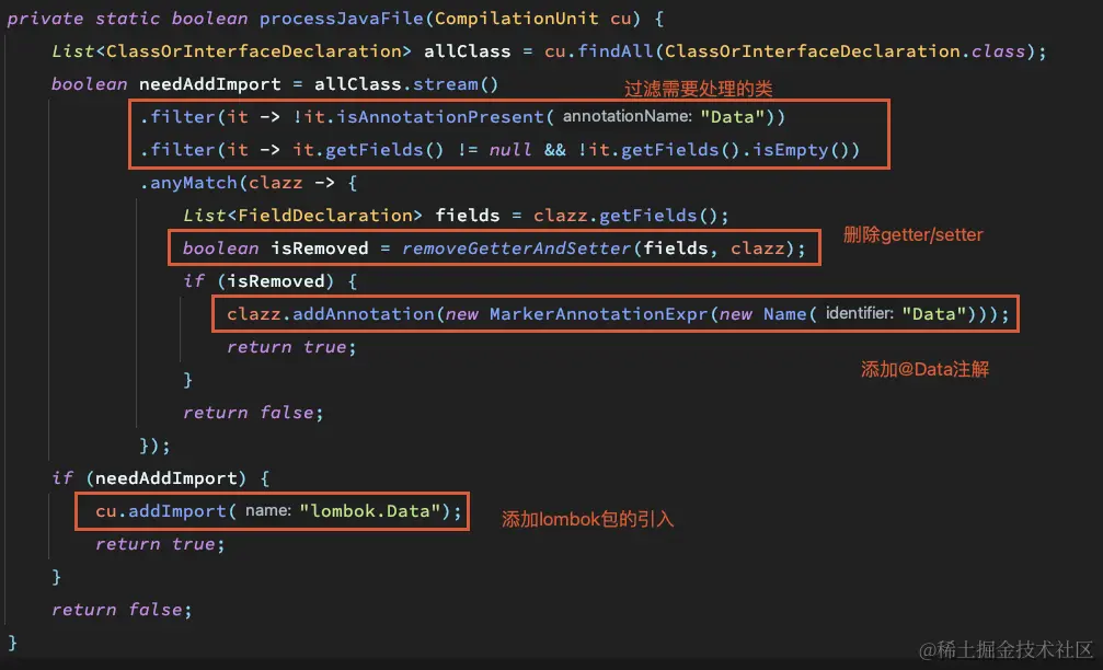 回过头来看,如果我们要写一个工具,对整个代码工程所有类进行全量扫描,并且使用lombok来替换其中的“没有特殊逻辑”的getter和setter,需要哪些步骤。