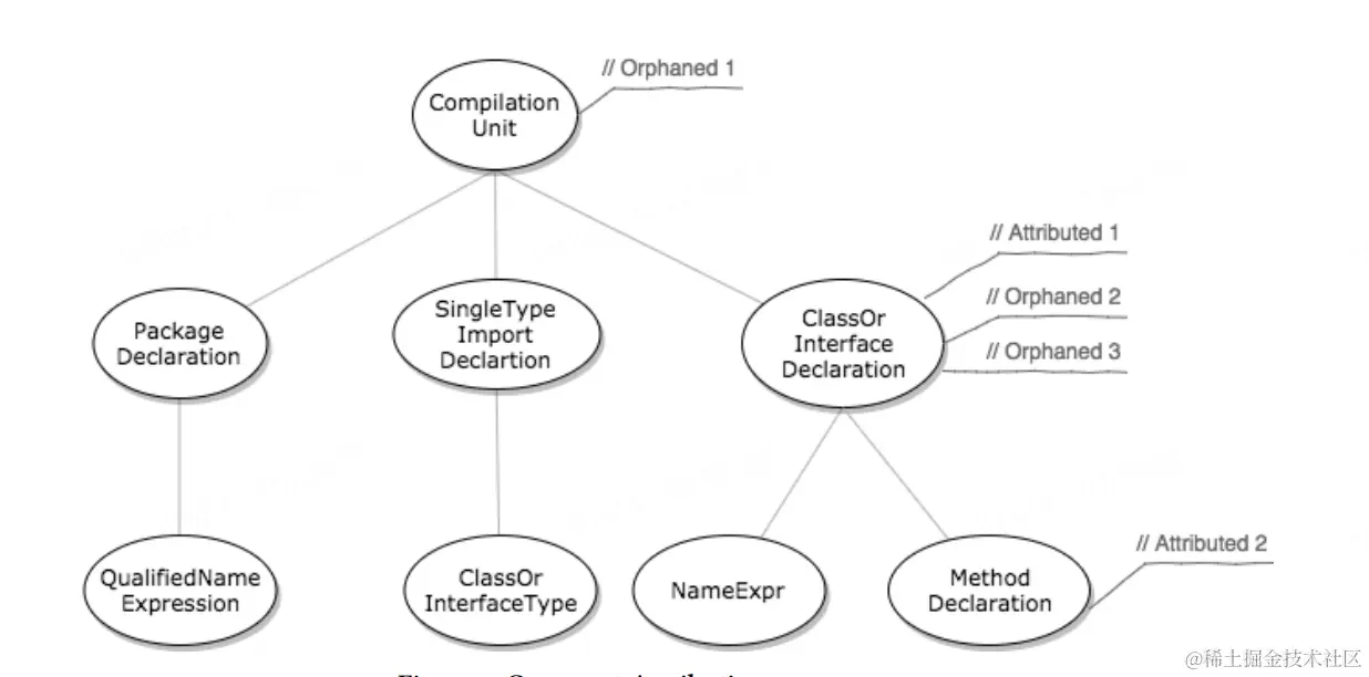 AST是后续操作(如遍历、分析、修改)的基础,也是使用方操作最频繁的类。上一章节使用的com.github.javaparser.ast.CompilationUnit是一个非常重要的类,它代表了Java源代码文件的根节点,是这个结构的抽象表示,包含整个文件的结构,例如: