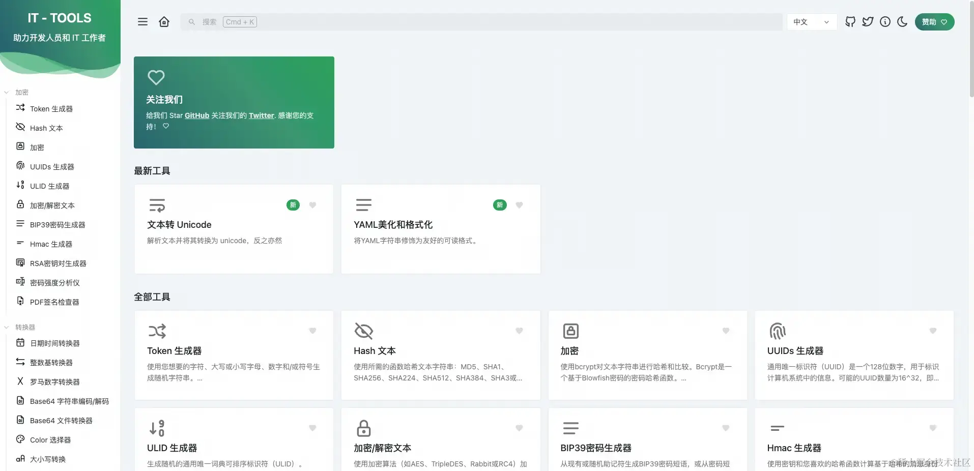 等等等等,而这些都被集成到了 it-tools 里,我们可以选择在自己的服务器上使用 docker 快速一件部署,也可以直接使用原作者部署好的地址 it-tools。