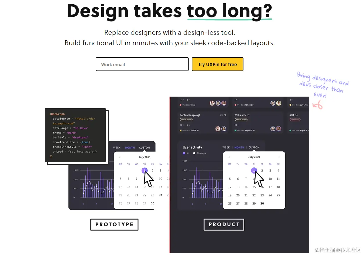 UXPin 使用与开发人员构建产品完全相同的 UI 代码组件进行设计。设计师无需编码技能,只需拖放元素即可。