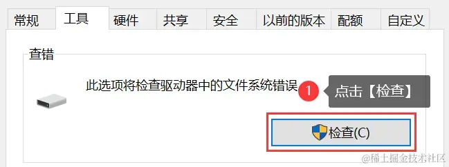 步骤3:点击【检查】,以检查U盘是否存在错误,如果U盘存在错误,请使用系统自带的工具进行修复;