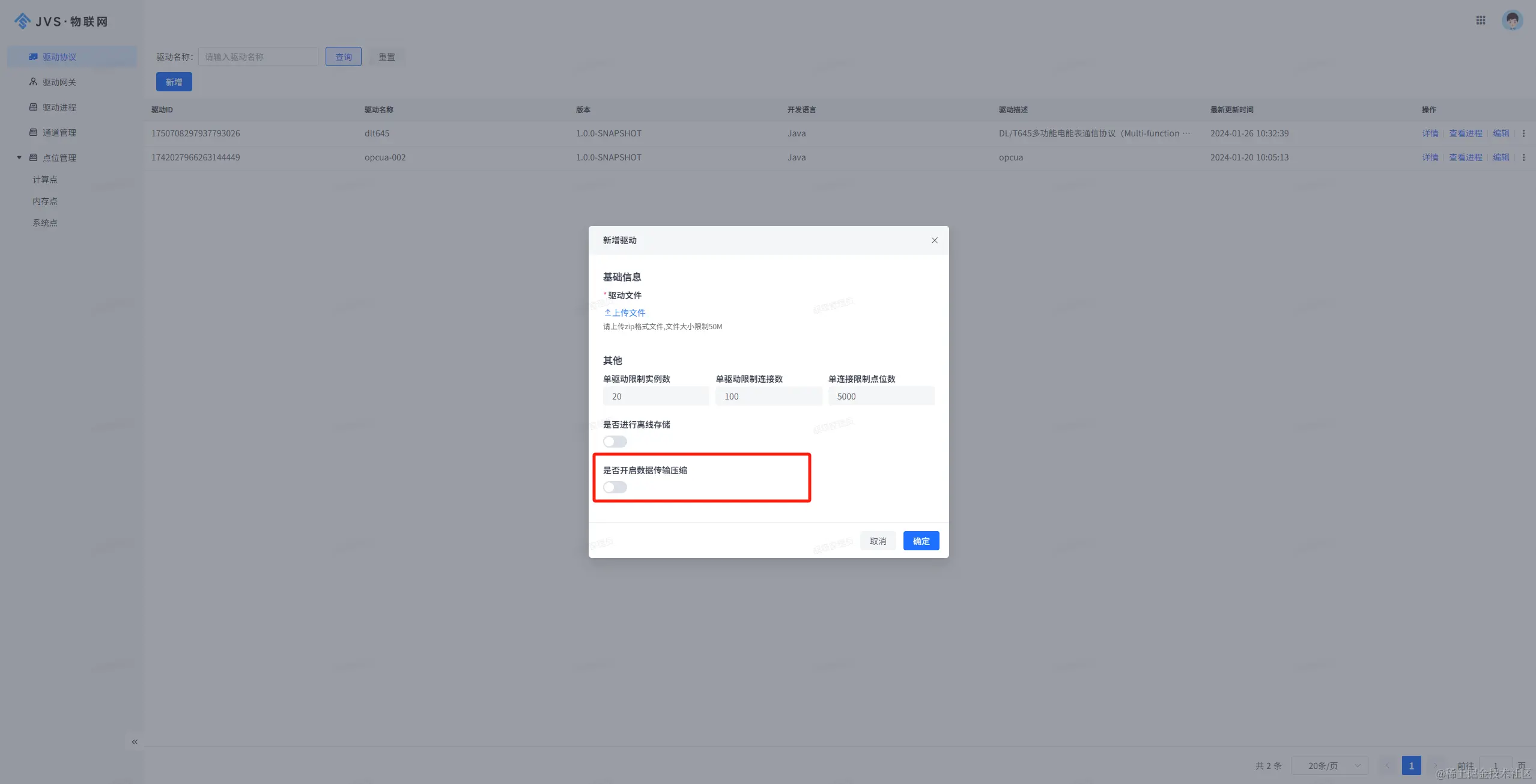 2、新增数据压缩-页面配置及指令下发对接;