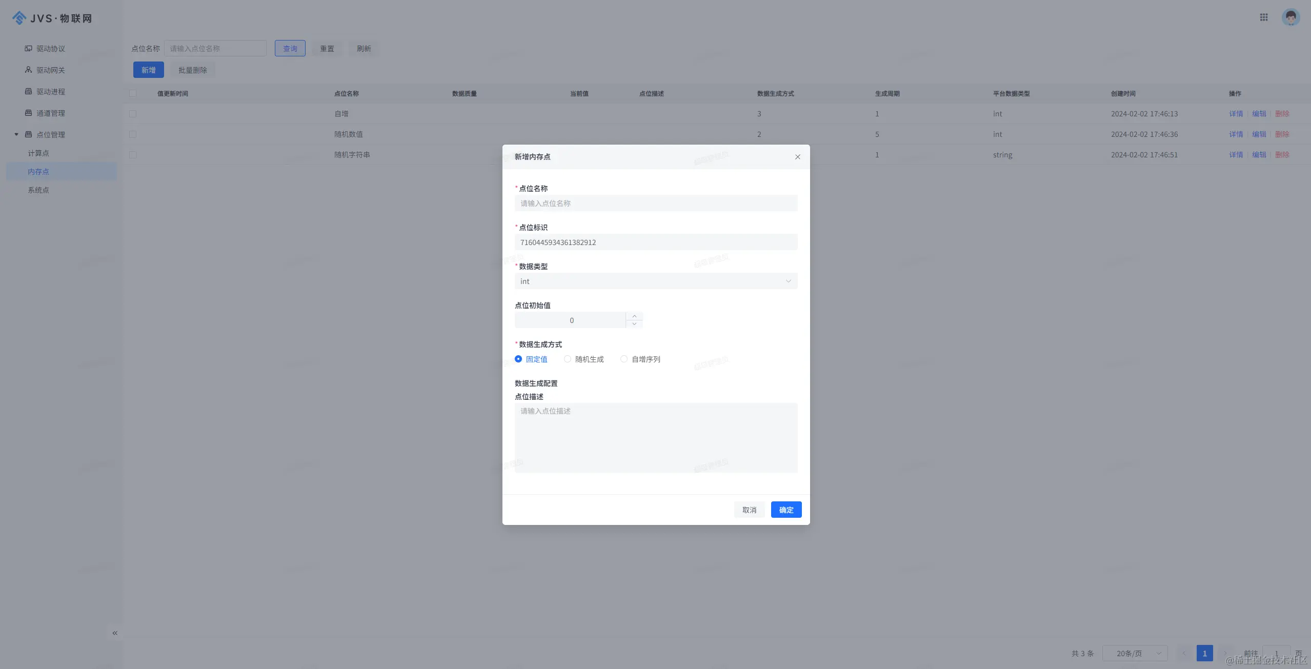 7、新增点位管理-内存点;