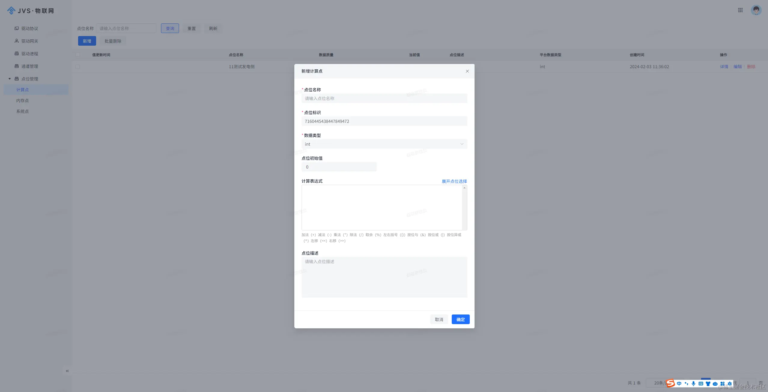 6、新增点位管理-计算点;