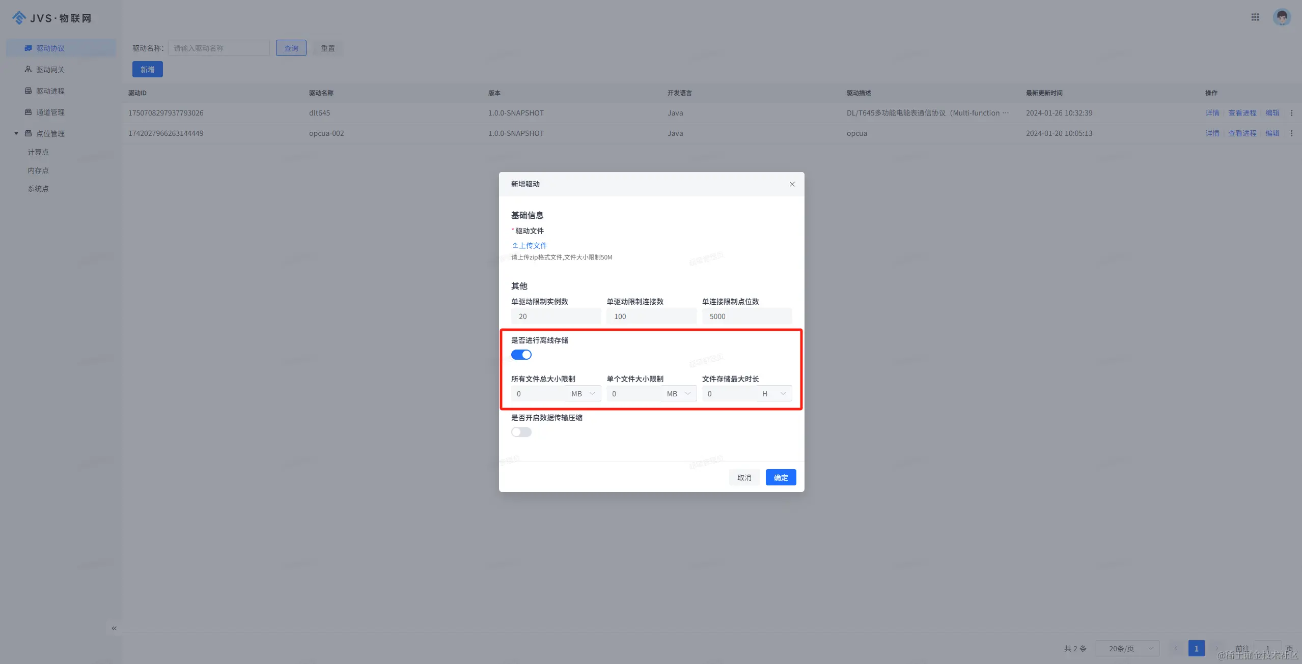 1、新增离线存储-页面配置及指令下发对接;