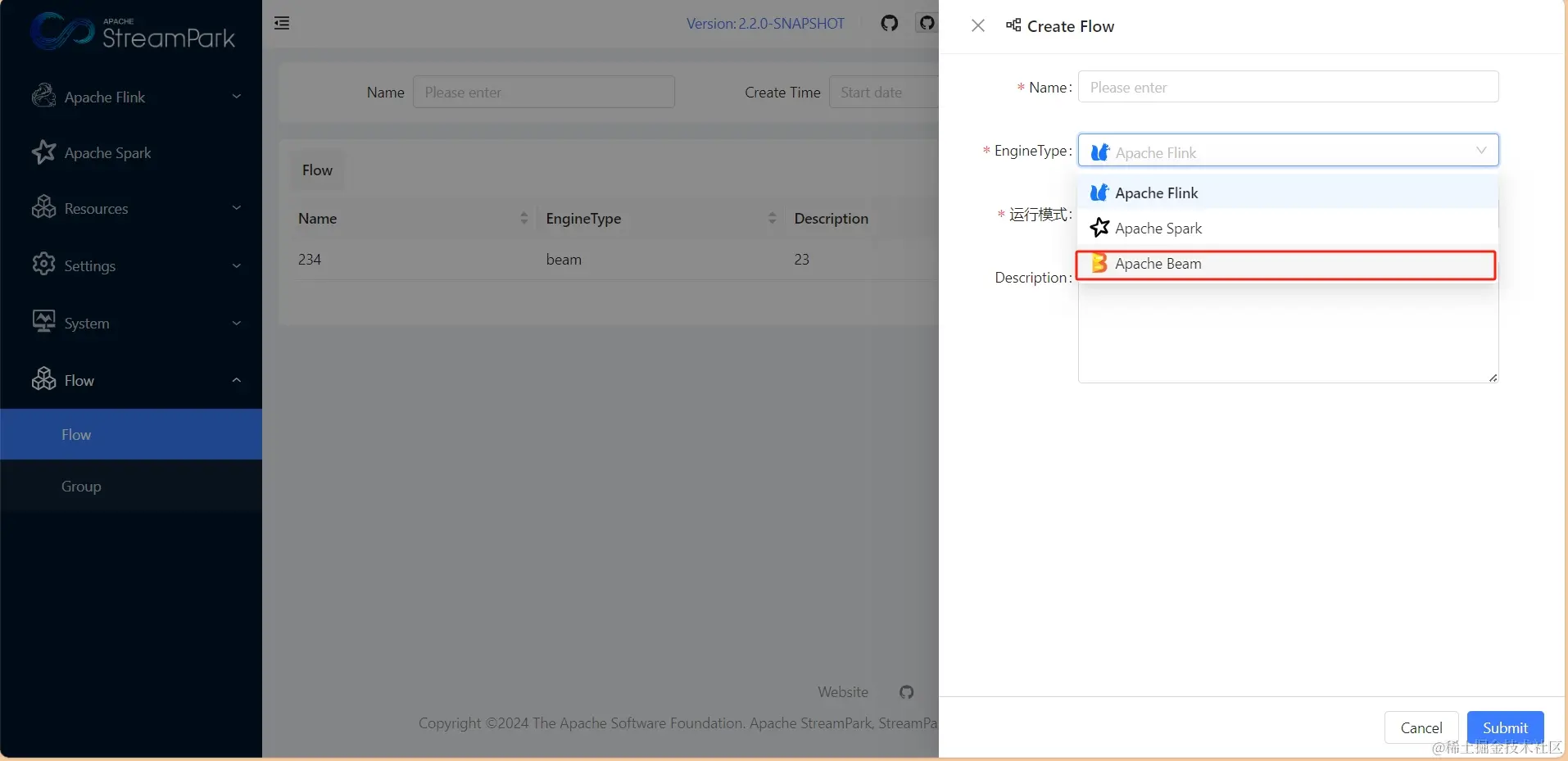 PiflowX可同时支持spark、flink和beam。借助beam的统一性,甚至可以一套逻辑同时运行在多种计算引擎下。