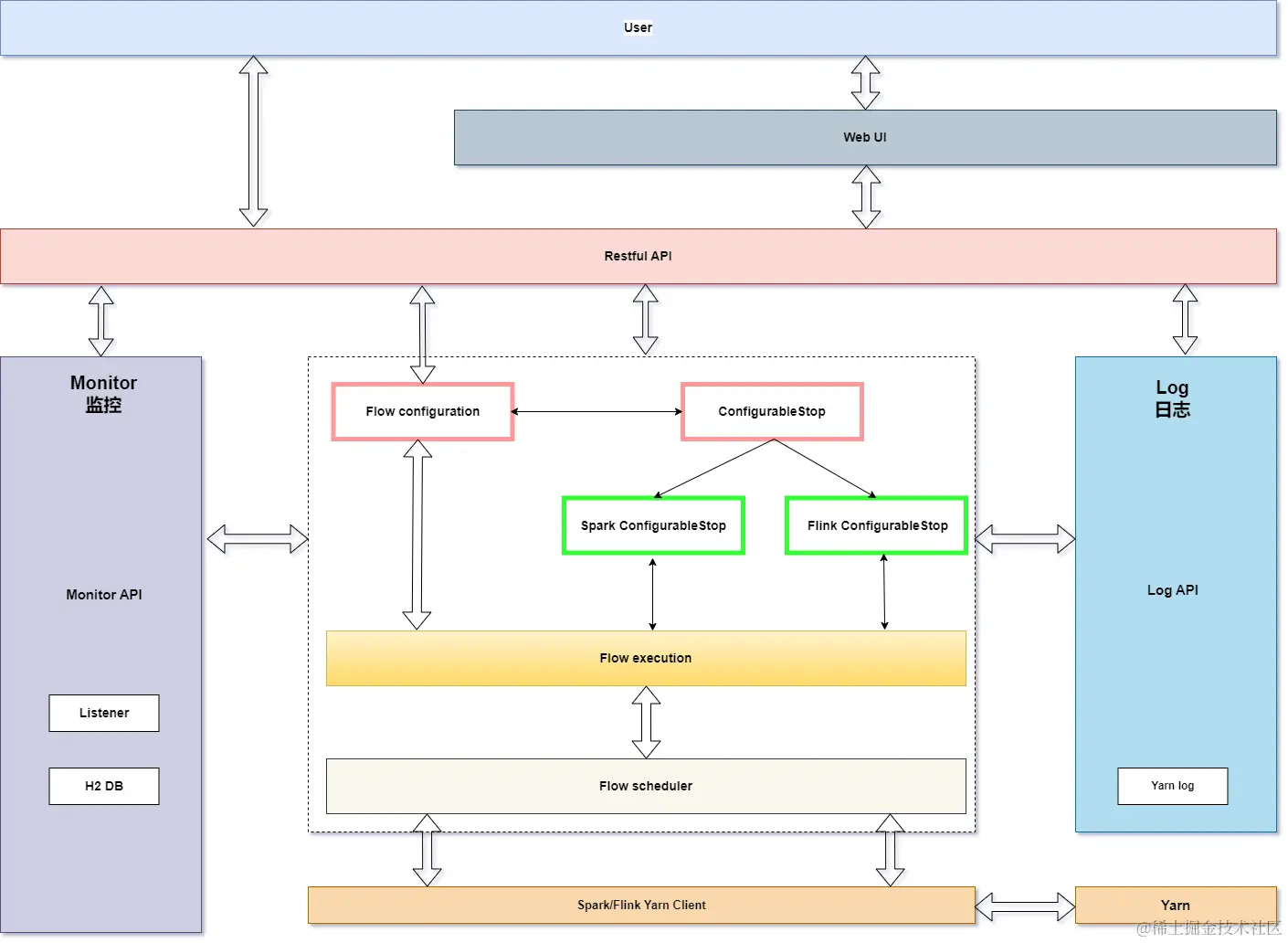在之前的文章中有介绍过,PiflowX是支持spark和flink计算引擎,其架构图如下所示: