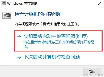 第一步:在开始菜单中搜索 “Windows内存诊断” ,使用它来检查内存条是否存在故障。如果有故障,及时更换。
