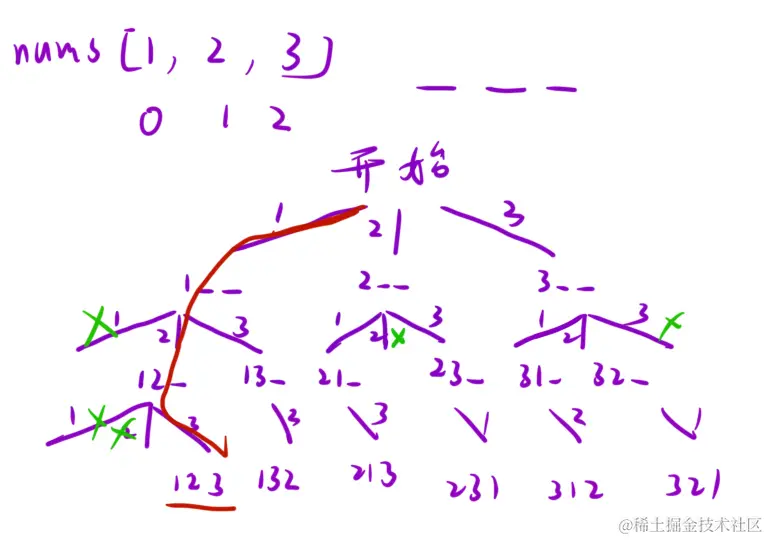 这题有点抽象,我们一起结合图片来理解吧,下图是当 nums 数组元素为 1 , 2 , 3 时的处理情况