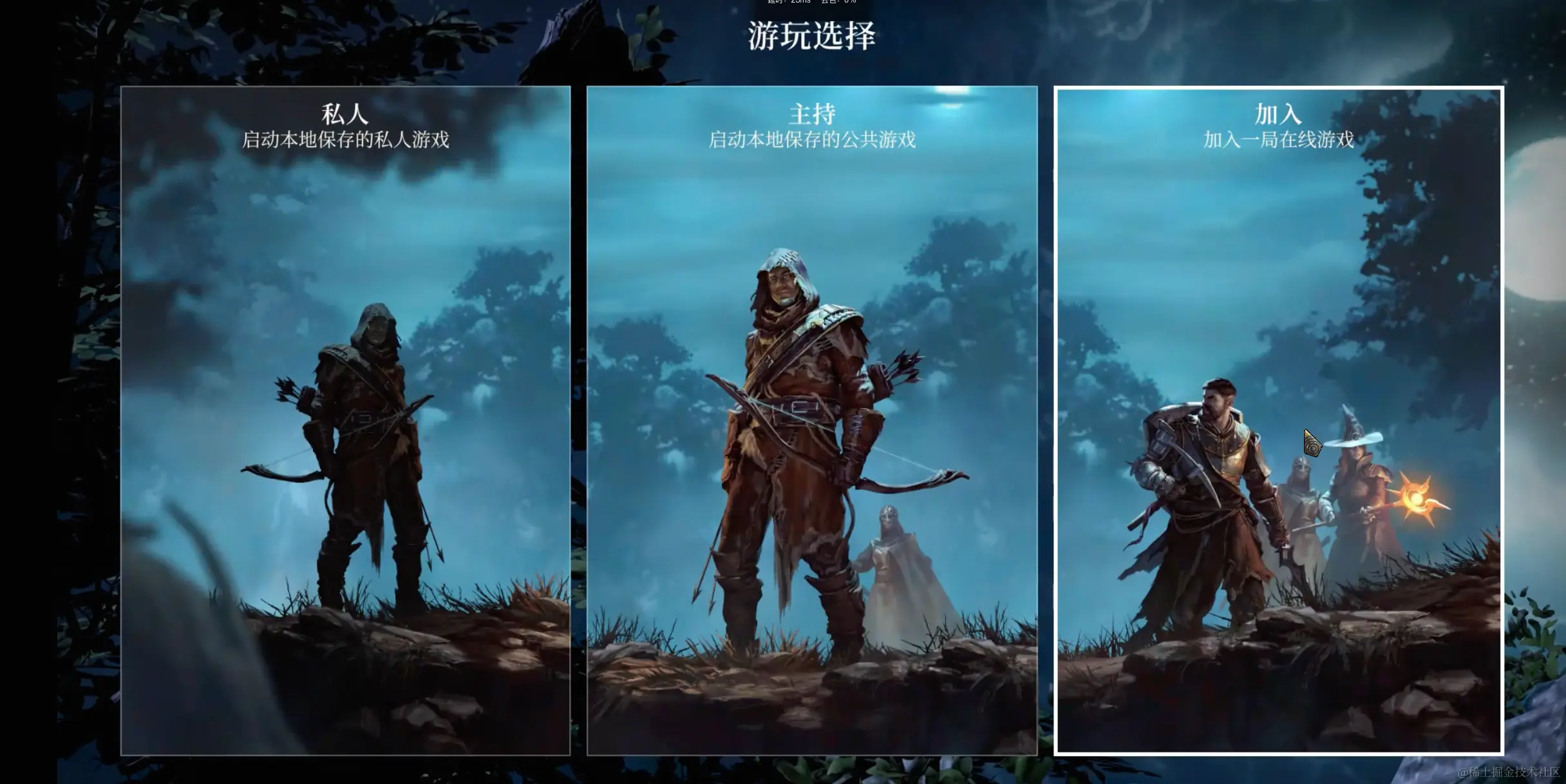 在游玩选择页面选择本次游玩的方式,单人游玩选择私人,如果是房主选择第二个主持进入相关设置页面,而其他玩家则选择第三个加入进入服务器选择页面。