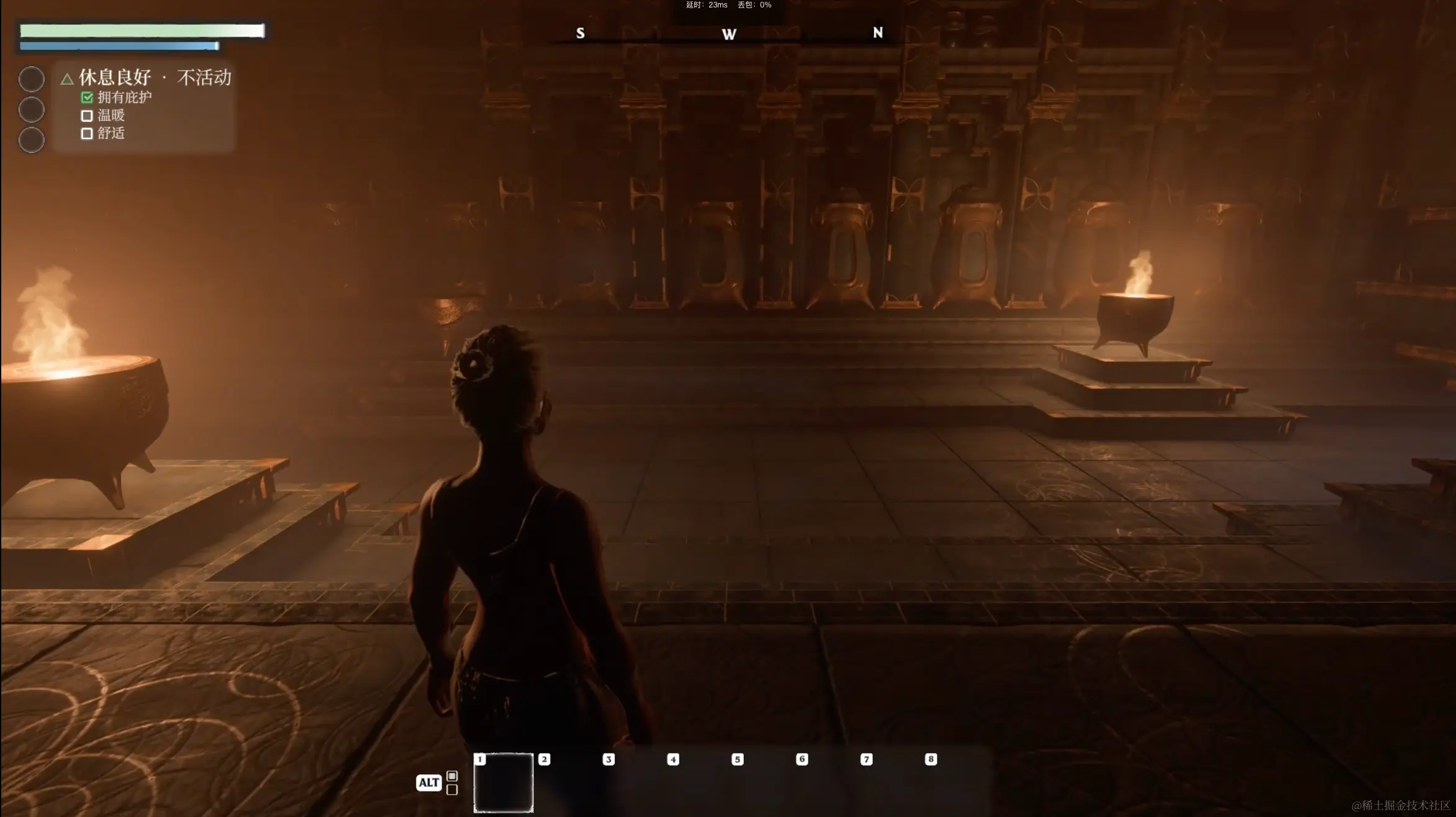 4、物品栏:在下方物品栏的东西可以直接通过快捷按键切换或使用,本作拥有第二物品栏功能,按下ALT并滚动鼠标滚轮可以随时切换两个物品栏。
