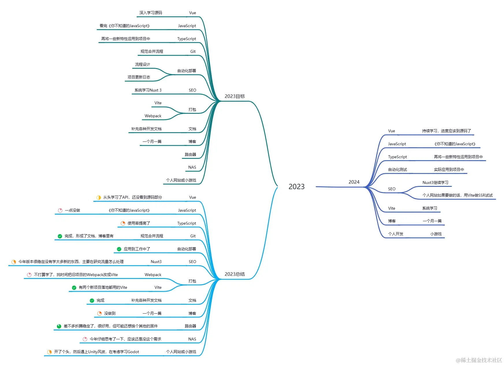 去年定的计划还是学 Webpack,今年直接把 Webpack 淘汰了,Vite 的打包速度确实要快不少,最近把一个主要的项目升 Vite,有惊无险没有影响业务,但是我个人比较困扰的问题就是热更新后必须刷新才能继续使用,这个不知道怎么解决,体验不如 Webpack,但是大家还能接受。成果是原来要打包 30 秒的项目项目,现在是 10 秒内,这个提升是可以接受的。Webpack 就暂时放下,框架太多,不想把精力分散太多。