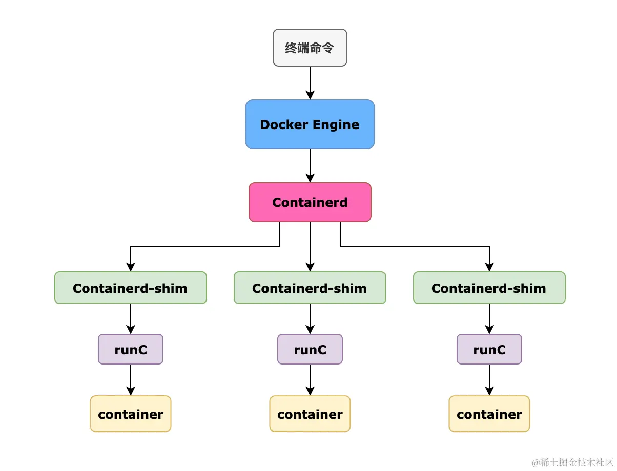 很早之前的 Docker Engine 中就有了 Containerd,只不过现在是将 Containerd 从 Docker Engine 里分离出来,作为一个独立的开源项目,目标是提供一个更加开放、稳定的容器运行基础设施。分离出来的Containerd 将具有更多的功能,涵盖整个容器运行时管理的所有需求,提供更强大的支持。