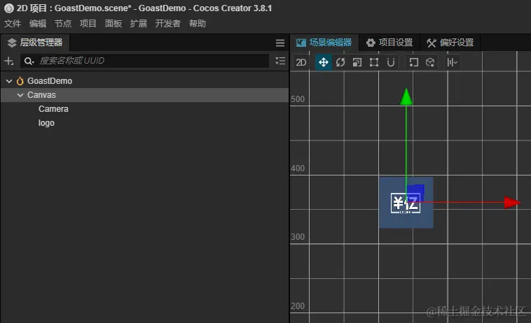 创建一个工程,简单地添加一个Sprite作为我们的拖拽产生残影的主角,如图所示是我们Logo。