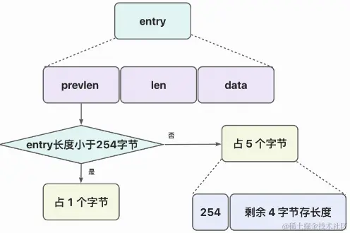 prevlen记录了前一个entry节点占了多少个字节len记录了当前这个entry节点里面data部分的长度data用来存放具体的数据