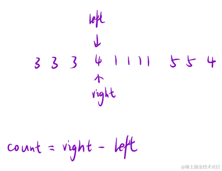 当右指针 right < 返回值 ret ,并且 ret.charAt( left ) == ret.charAt( right )时,说明当前 right 指针的值和 left 指针相同,则 right ++ ,同时更新 left 指针的位置。