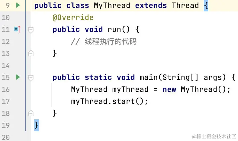 有时候,我们可能想直接继承 Thread 类,这也是一种创建线程的方式,但要注意Java不支持多继承哦!