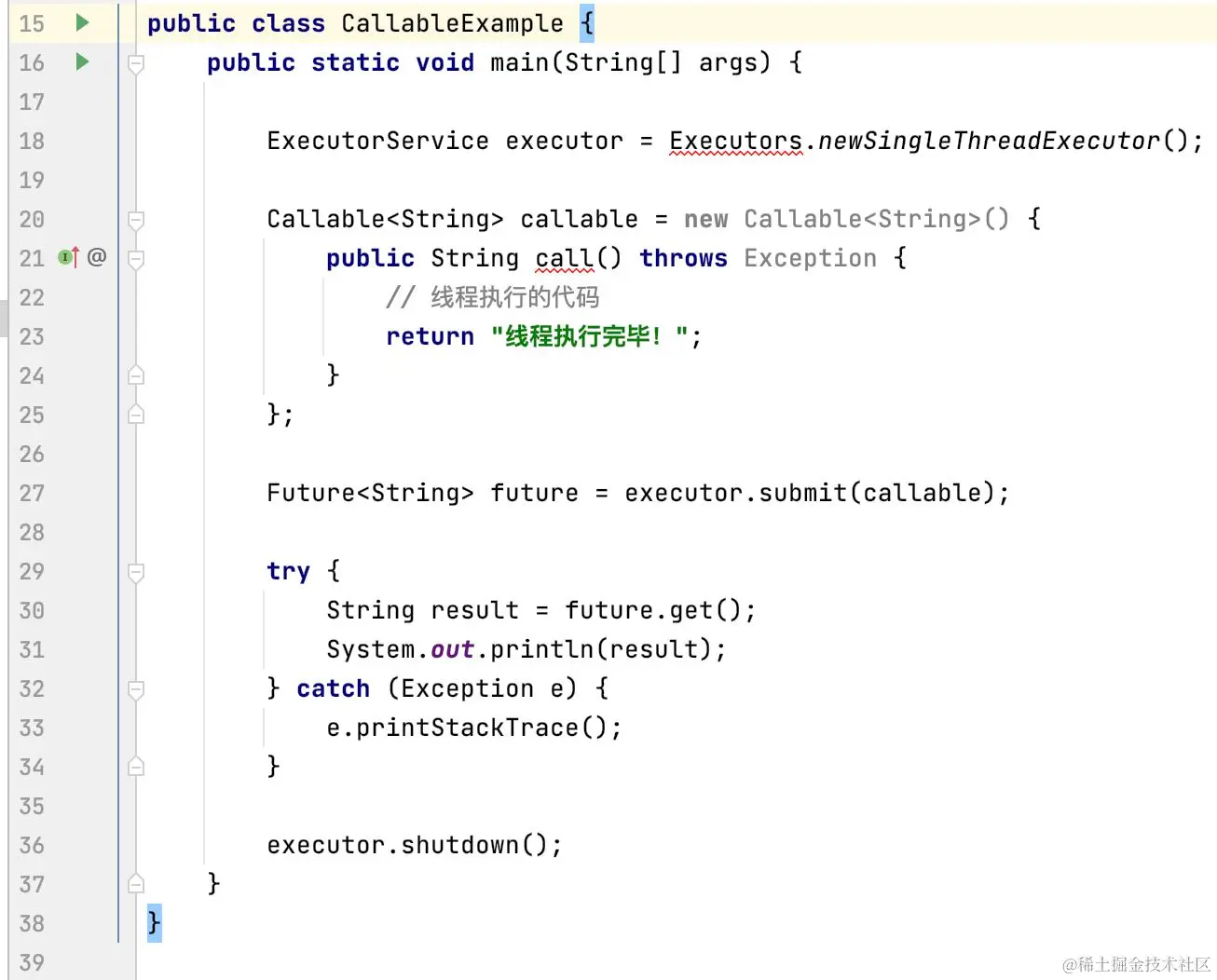 Callable和Future是Java中实现带返回值线程的一种方式,相比Runnable,但有一个明显的区别——它可以返回结果和抛出异常。