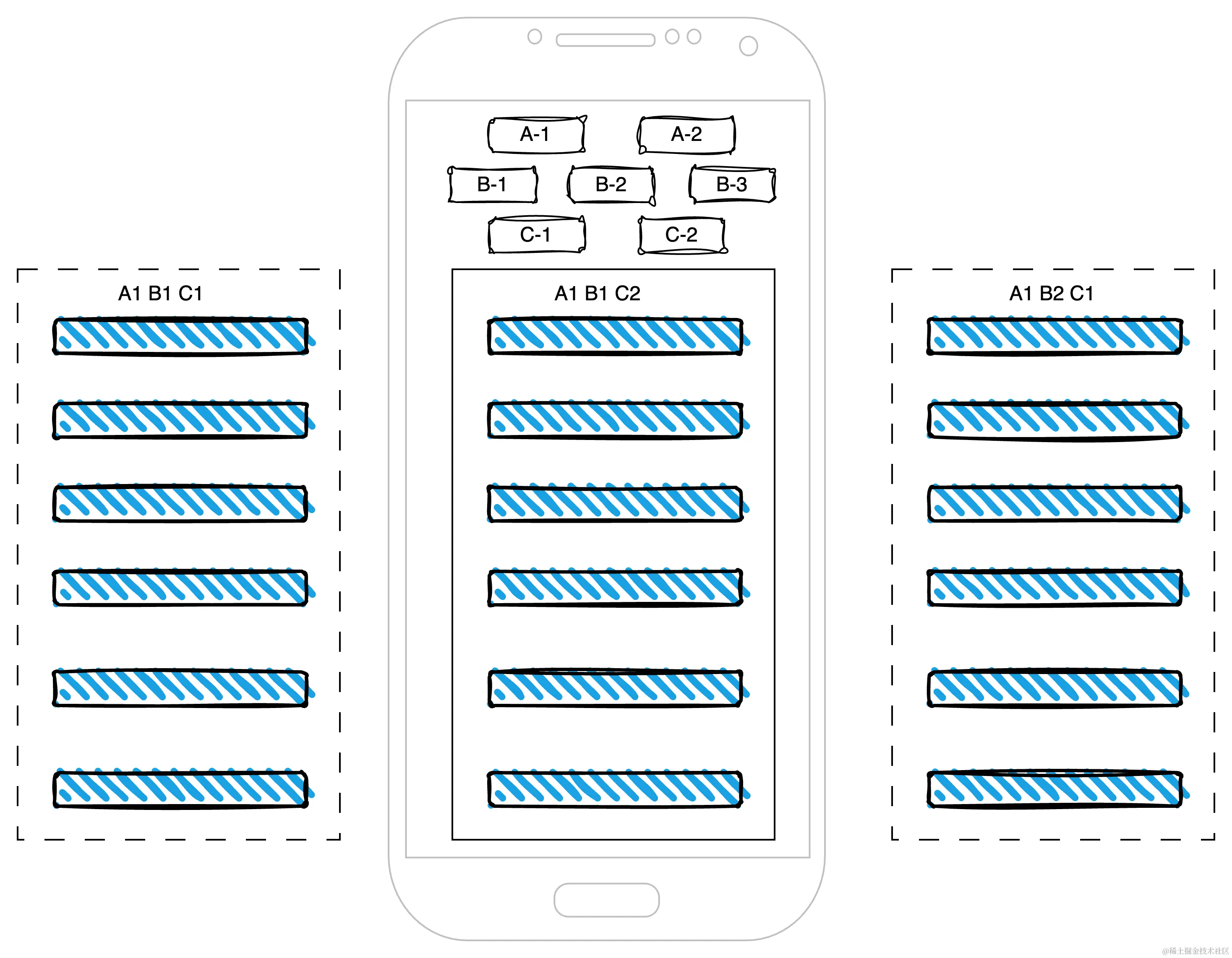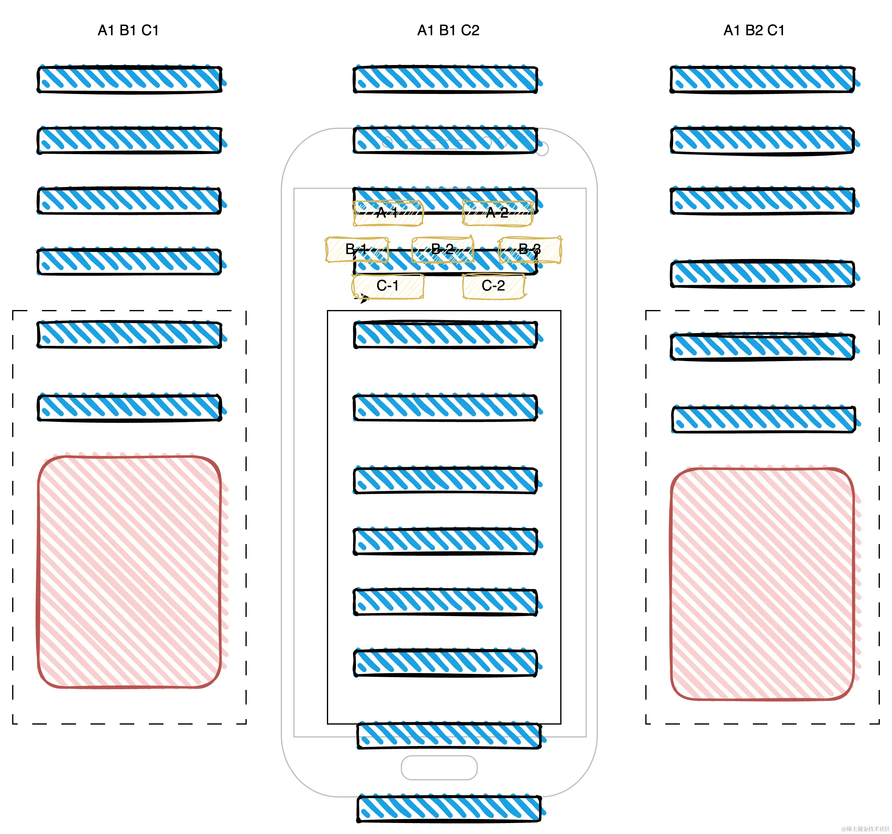 // A1, A2, A3...为不同的业务模块