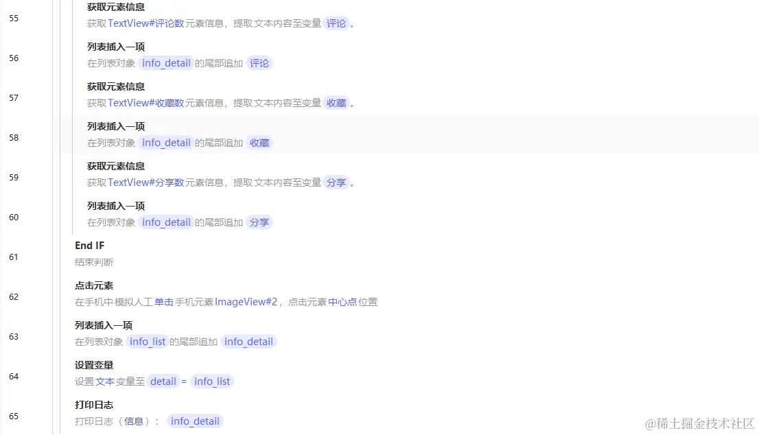 可以看到,图中有很多[列表中插入一项]指令操作,这个是为了把收集到的数据用列表的形式记录下来,然后返给PC端,PC端好记录