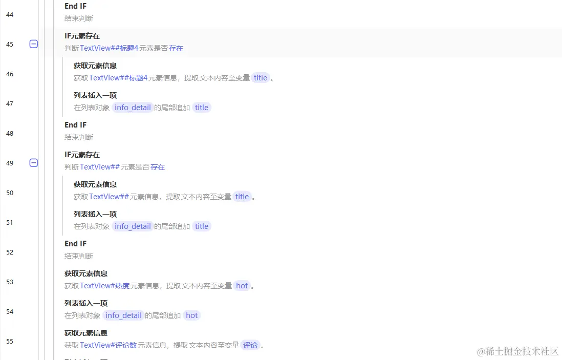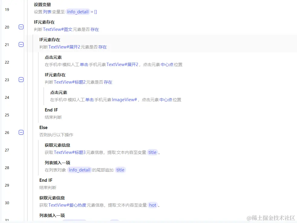 4. 收集相关热度数据,因为页面变化,视频页面的相关元素会出现变动,所以收集数据之前,要先判断热度数据元素是存在,使用[IF元素存在]指令多做几个判断即可。