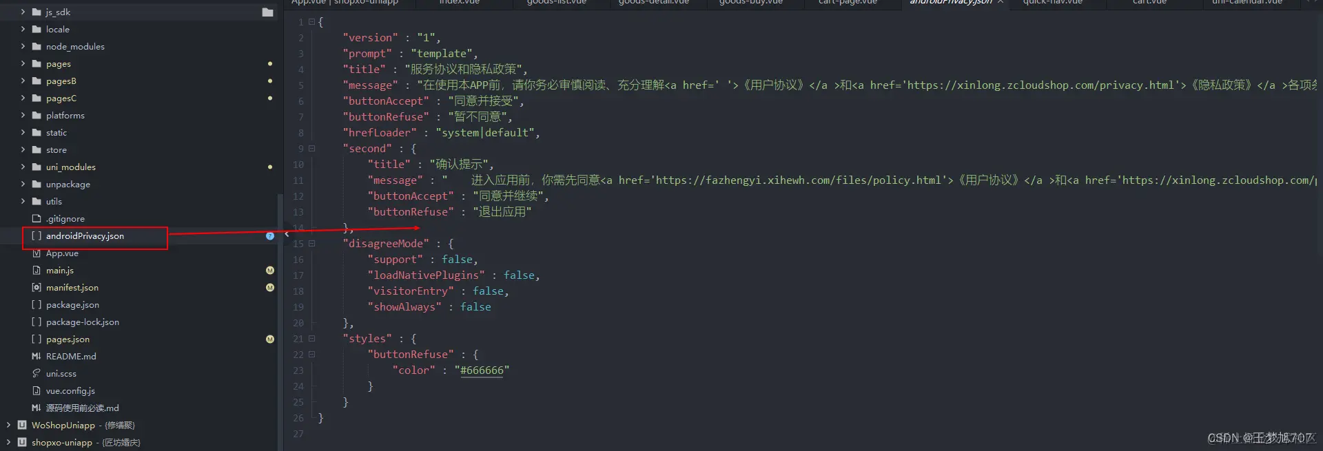 平台隐私与政策提示框