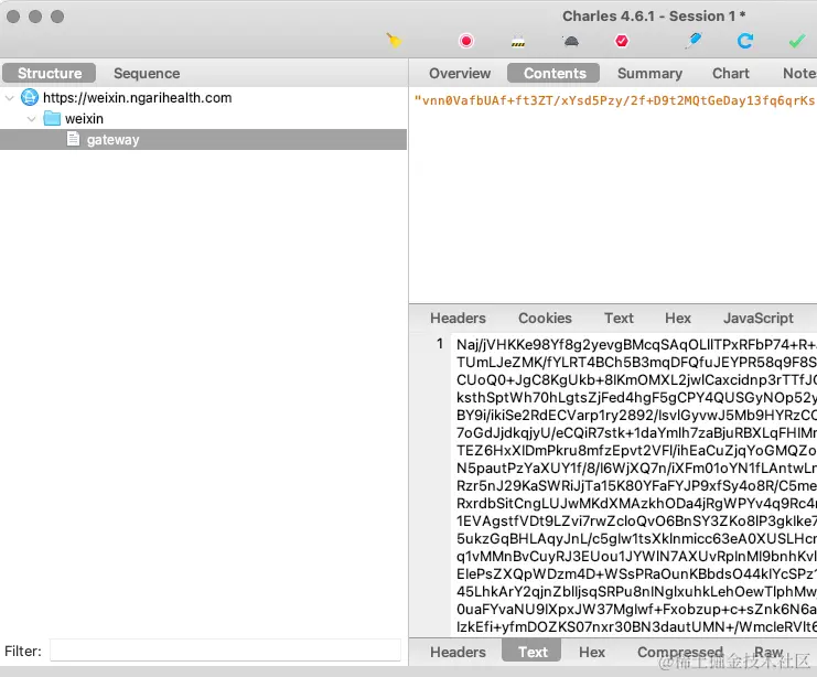 先清空 charles 中已经抓取到的请求,然后切换时间段,就能看到一个 gateway 的请求,结果如下图;