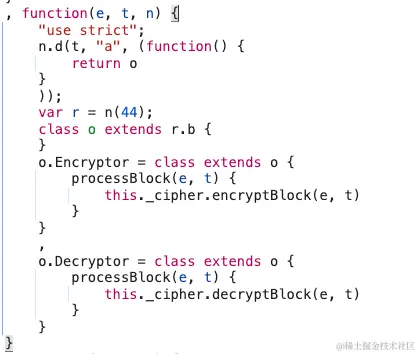 然后尝试把 app.03c21be5.js 下载到本地,使用 vscode 打开并且格式化之后,继续搜索 crypto,不难找到如下代码