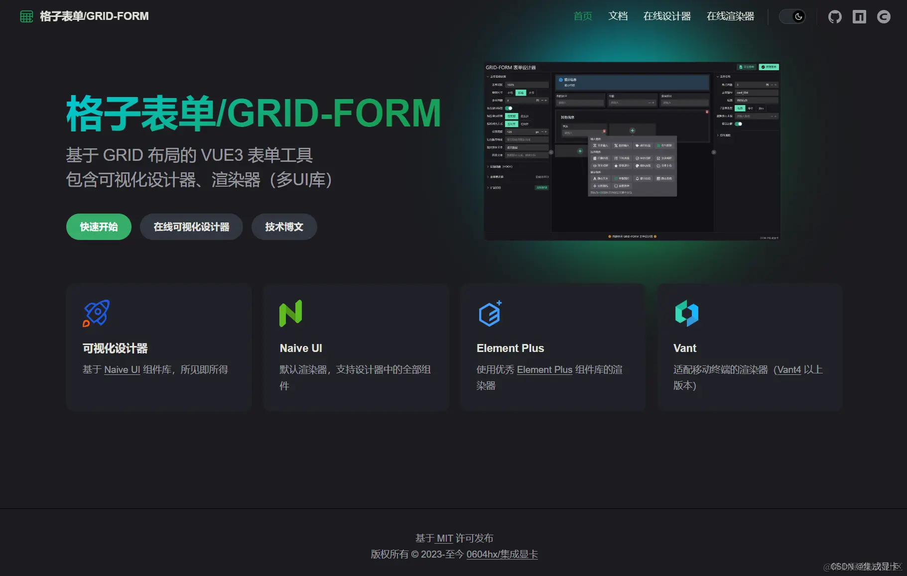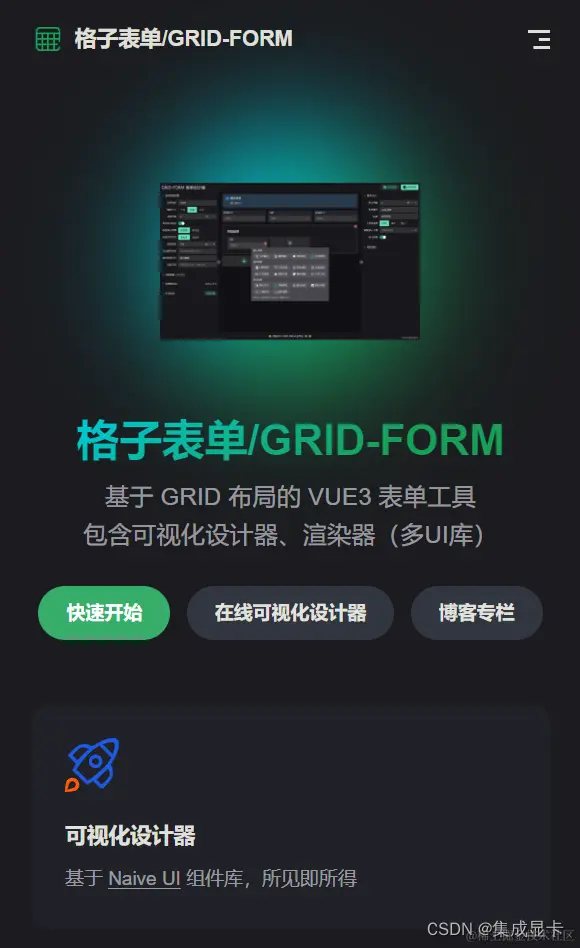 tagline: 基于 GRID 布局的 VUE3 表单工具<br>包含可视化设计器、渲染器(多UI库)