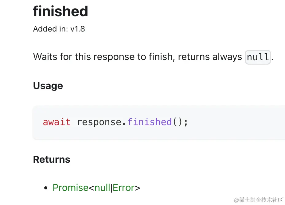 - 方法一:查阅文档我们发现Response中的API有finished函数可以等待完成,代码稍做改造