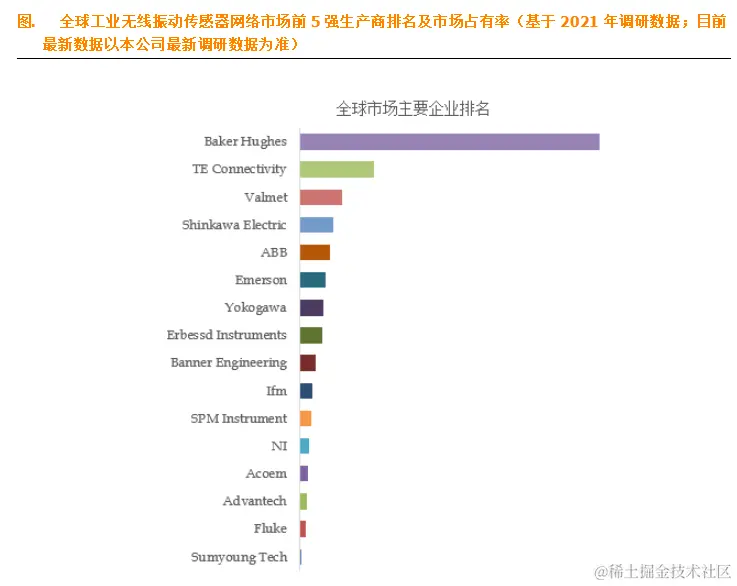 全球范围内 工业无线振动传感器网络生产商主要包括Baker Hughes、TE Connectivity、Valmet、Shinkawa Electric、ABB、Emerson、Yokogawa、Erbessd Instruments、Banner Engineering、Ifm等。2021年,全球前五大厂商占有大约51.0%的市场份额。
