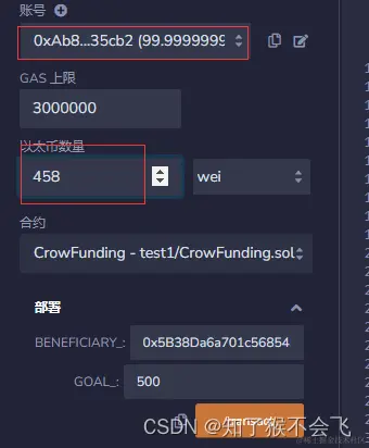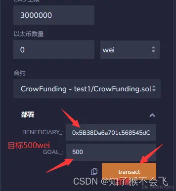初始化受益者的地址和募集目标。
