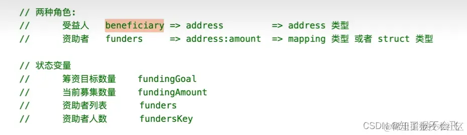 创建受益者和募集目标,immutable为不可改变