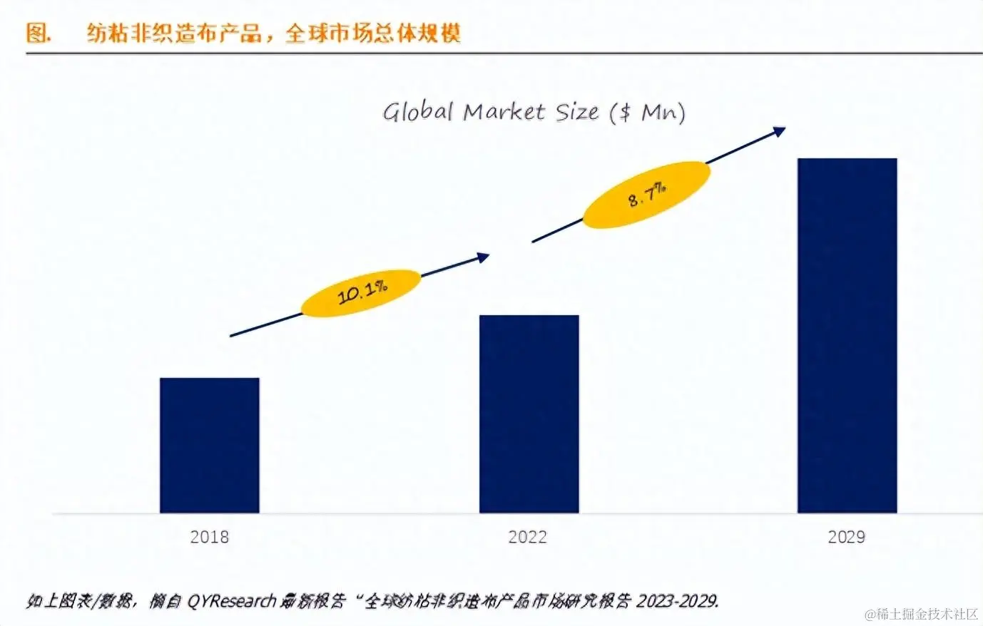据QYResearch调研团队最新报告“全球纺粘非织造布产品市场报告2023-2029”显示,预计2029年全球纺粘非织造布产品市场规模将达到378.1亿美元,未来几年年复合增长率CAGR为8.7%。