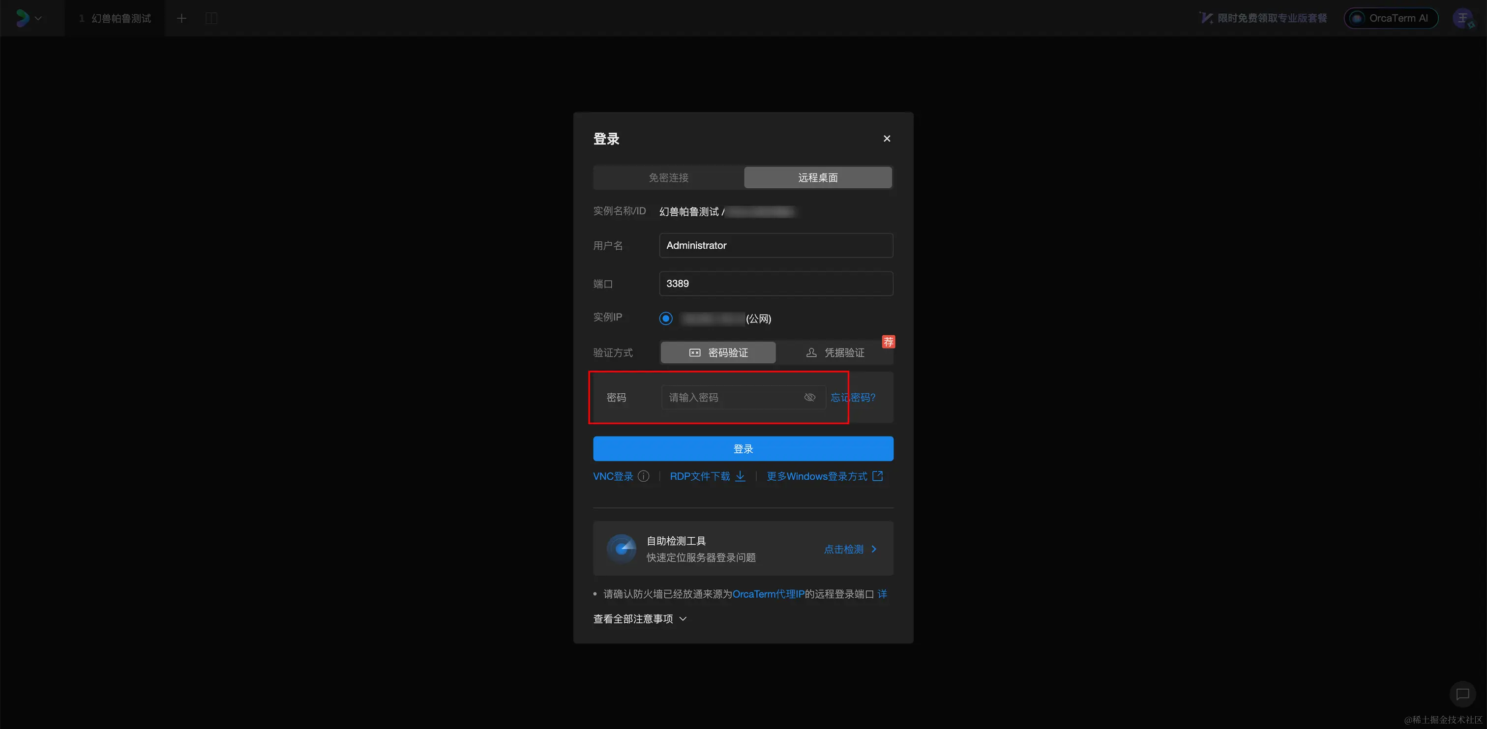 2、选中服务器实例,点击【登录】按钮,并在登录页面输入登录密码即可。