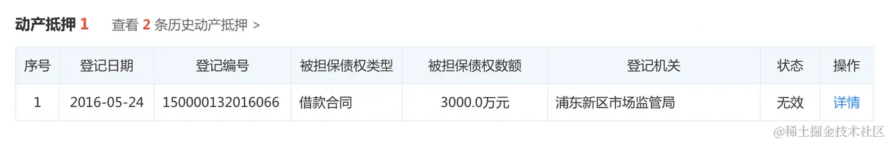 APISpace 的 企业动产抵押信息API,通过公司名称/公司ID/注册号或社会统一信用代码获取企业动产抵押信息,企业动产抵押信息包括被担保债权类型、数额、登记机关等字段信息;还可以查询历史动产抵押信息。