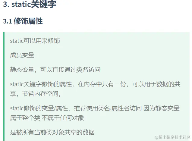 属性:静态属性,直接通过类名访问,内存中只有一份拷贝