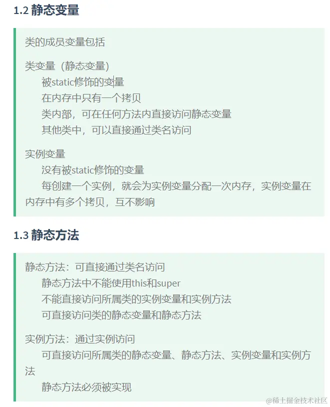 方法:静态方法中不能使用this和super,不能直接访问实例变量和实例方法,可以访问被static修饰的内容。