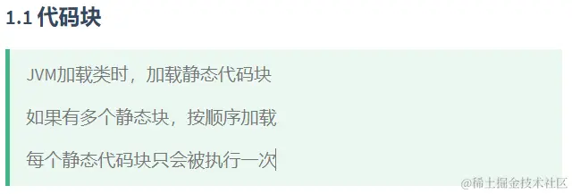代码块:jvm加载类时先加载静态代码块,且只被执行一次。