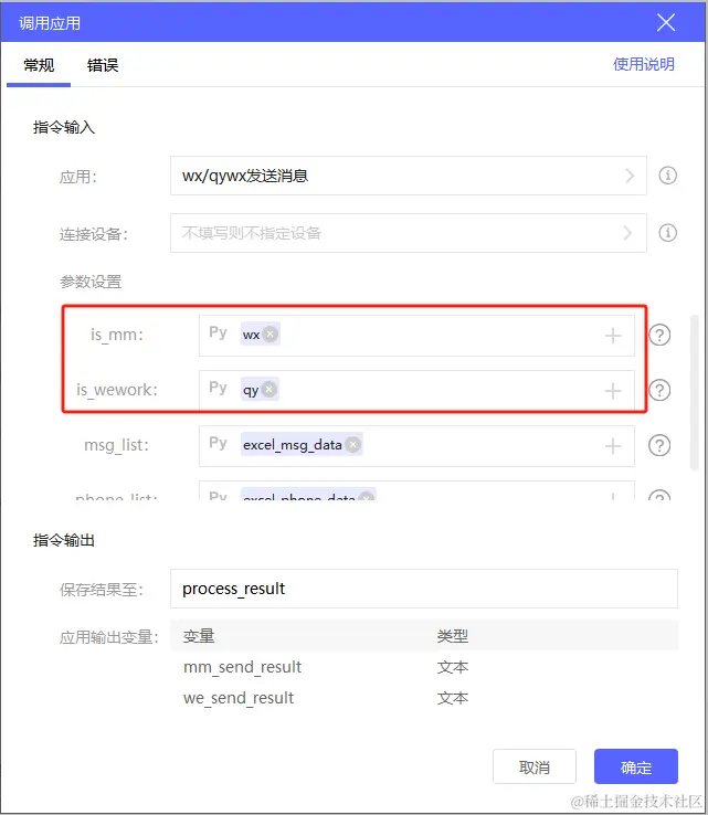 11. 后面每次运行时,在运行参数进行直接设置既可以控制运行哪个App发送消息