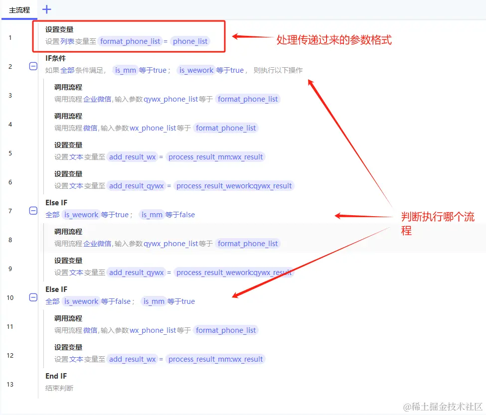 10. 可以在PC端通过主流程的参数来调整时添加微信的还是添加企业微信,整合后的PC端流程如下: