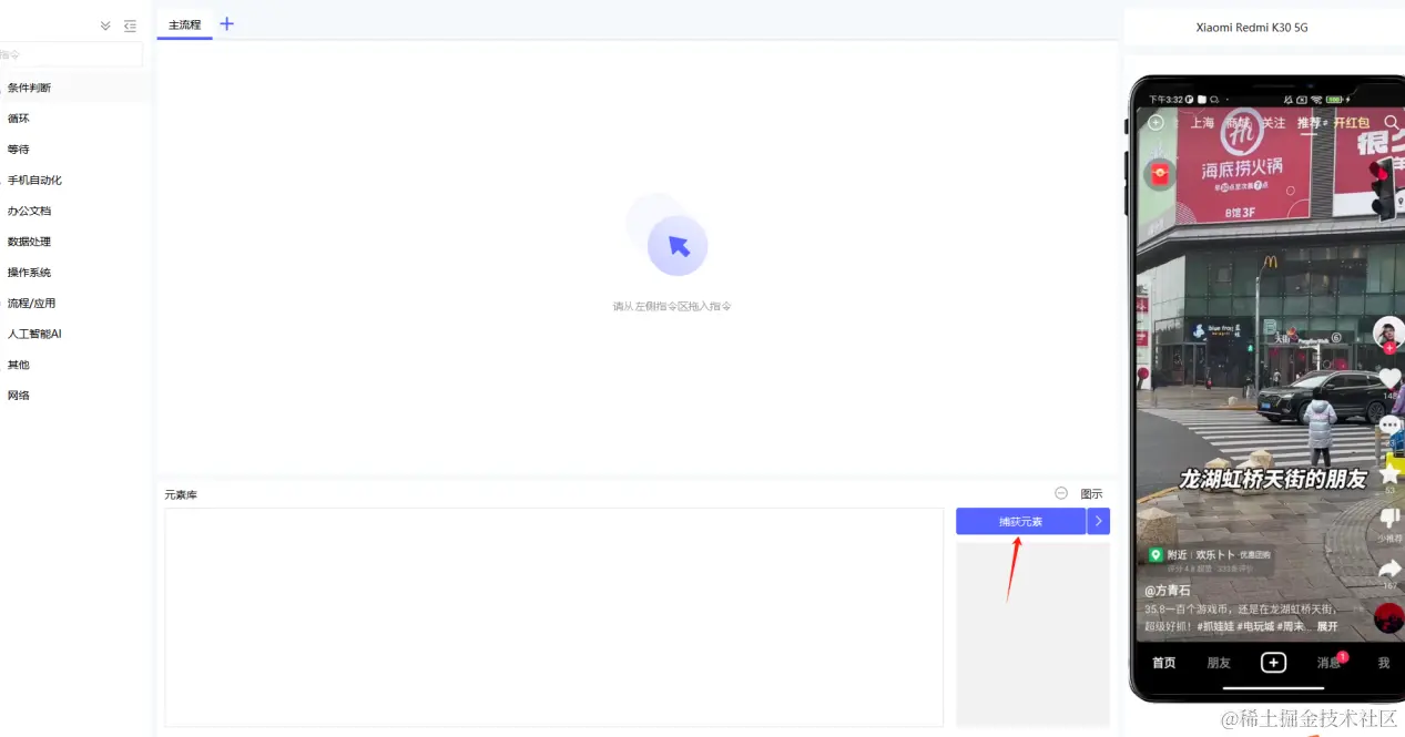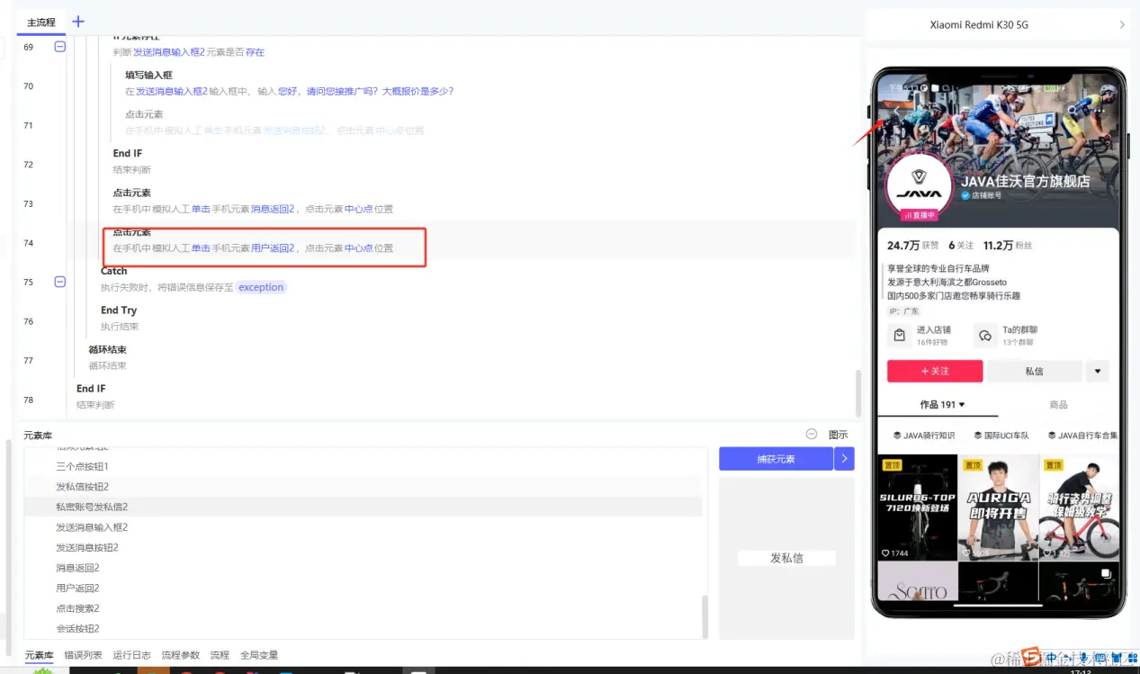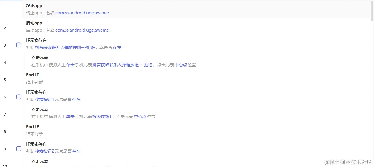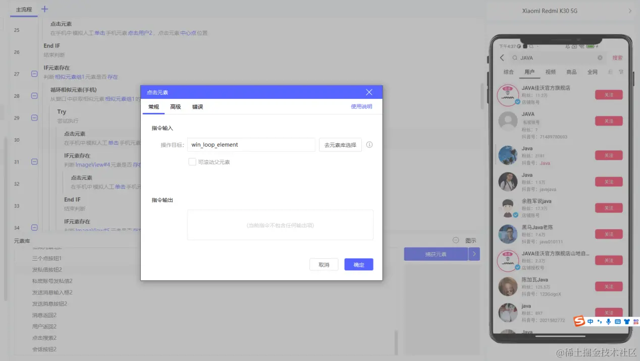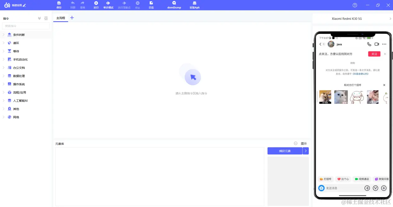 5.不同手机,可能会出现捕捉的元素不存在,需要做兼容,if元素判断,保证能都在不同手机上进行运行。(本文构建应用使用的RPA客户端版本为v1.9.3)